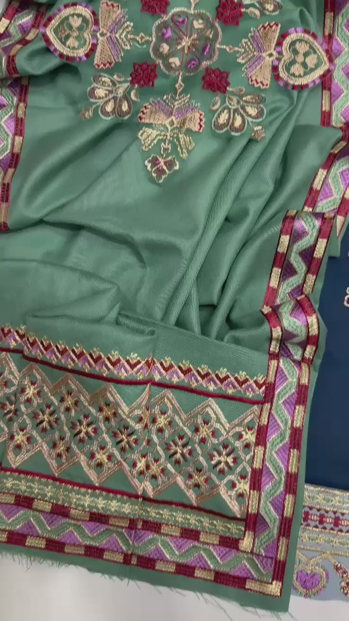 •Dhanak Embroidered Shawl with pallu